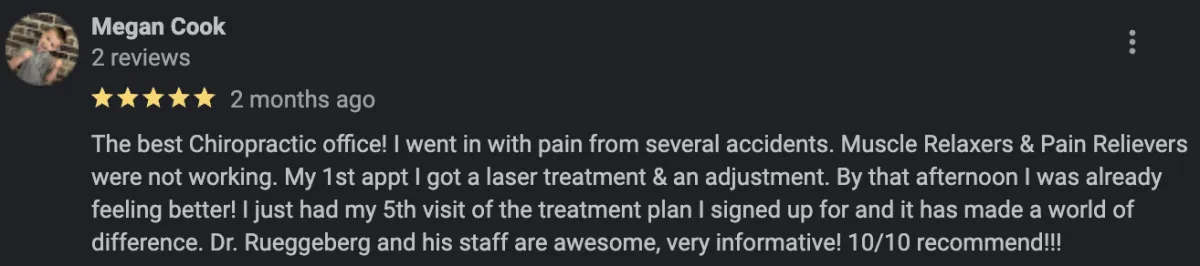 ✅ Detailed Exam: A comprehensive examination that assesses your area of complaint and overall well-being. The chiropractor will look for any misalignments, mobility issues, or areas of tension that could be contributing to discomfort or health challenges.